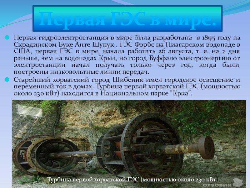 Турбина первой хорватской ГЭС (мощностью около 230 кВт)