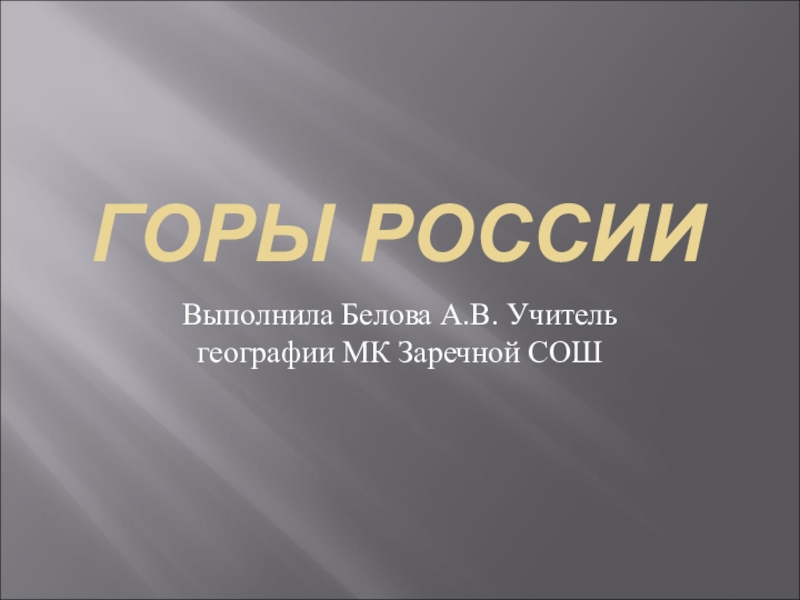 ГОРЫ РОССИИВыполнила Белова А.В. Учитель географии МК Заречной СОШ