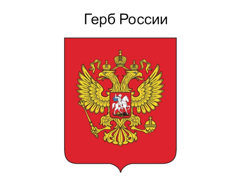 Петра I. С течением времени символика Российской Федерации — герб — претерпевал изменения. И в настоящее время российская символика — герб — предстает перед нами в следующем виде. Символика России — герб — представляет собой красный заостренный в оконечности геральдический щит в форме четырехугольника, нижние углы которого закруглены. На щите изображен двуглавый орел с поднятыми вверх и распущенными крыльями. На голове у орла две маленькие и одна большая корона, которые соединены между собой лентой. Скипетр располагается в правой лапе орла, а в левой лапе находится держава. На красном щите, который расположен на груди у орла, находится всадник в синем плаще и на серебряном коне. Всадник поражает копьем дракона, который лежит навзничь.