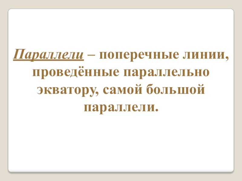 Слайд 6Параллели – поперечные линии, проведённые параллельно экватору, самой большой параллели.