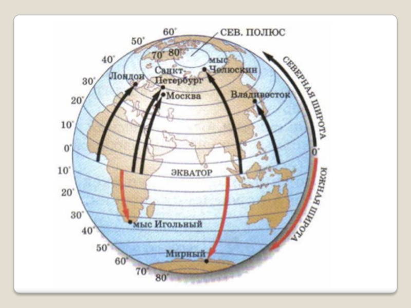 Северное полушариеЮжное полушариеСеверная широтаЮжная широта