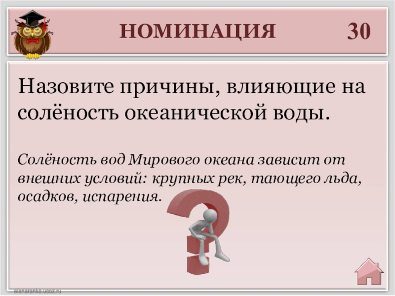Назовите причины, влияющие на солёность океанической воды.