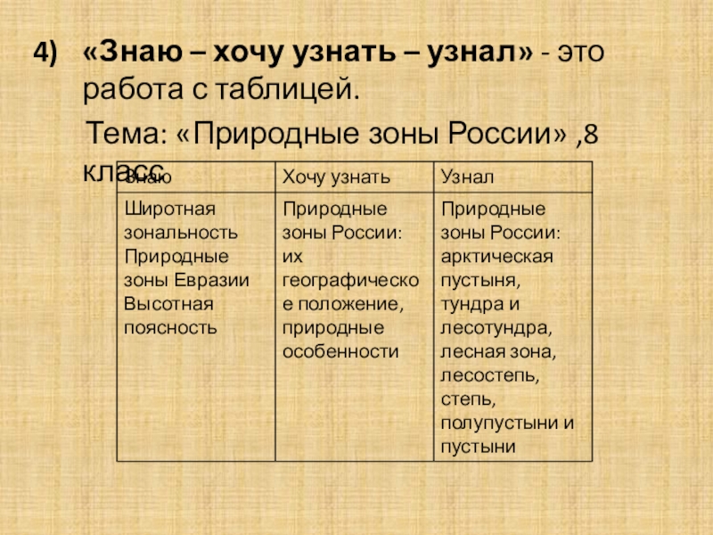 Слайд 8«Знаю – хочу узнать – узнал» - это работа с таблицей.