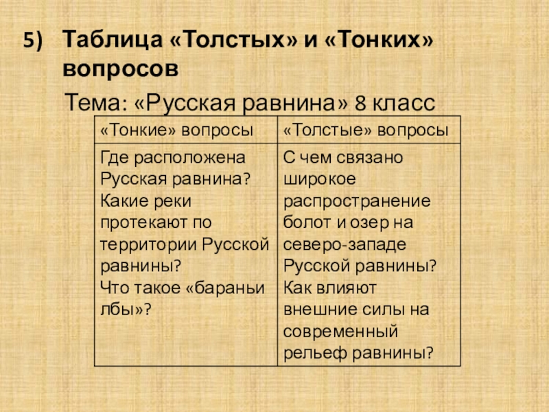 Слайд 9Таблица «Толстых» и «Тонких» вопросов