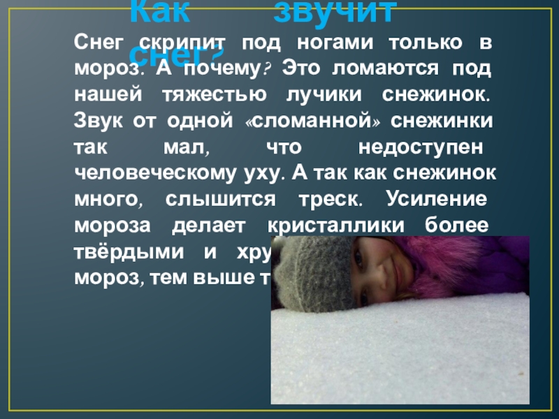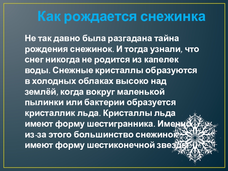узнать, как рождается снежинка, сколько весит, как звучит;