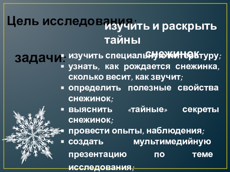 выяснить «тайные» секреты снежинок;