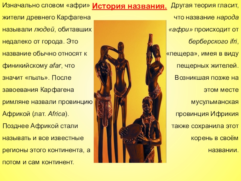 Другая теория гласит, что название народа «афри» происходит от берберского ifri, «пещера», имея в виду пещерных жителей. Возникшая позже на этом месте мусульманская провинция Ифрикия также сохранила этот корень в своём названии.