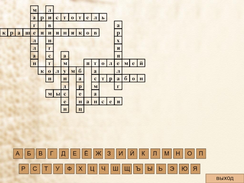 Для того чтобы вписать отгаданные слова, необходимо нажимать на буквы из алфавита, расположенного внизу. Открытые буквы набирать не требуется.