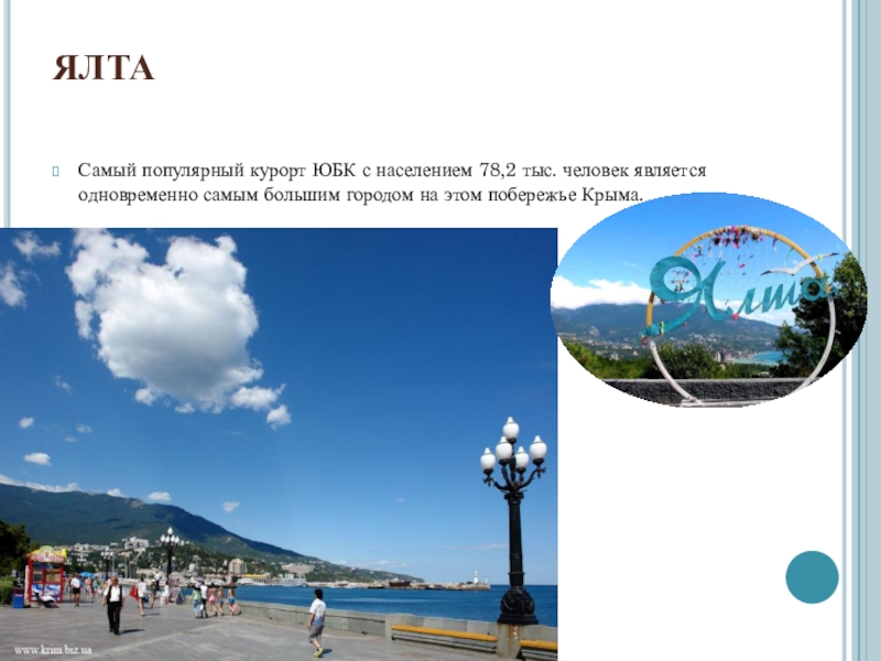 ЯЛТА Самый популярный курорт ЮБК с населением 78,2 тыс. человек является одновременно самым большим городом на этом