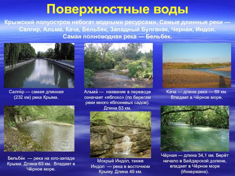 Альма́ — название в переводе означает «яблоко» (по берегам реки много яблоневых садов). Длина 83 км.