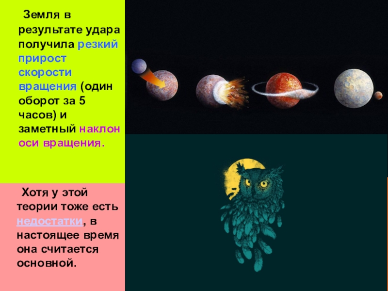 Слайд 50 Земля в результате удара получила резкий прирост скорости вращения (один оборот