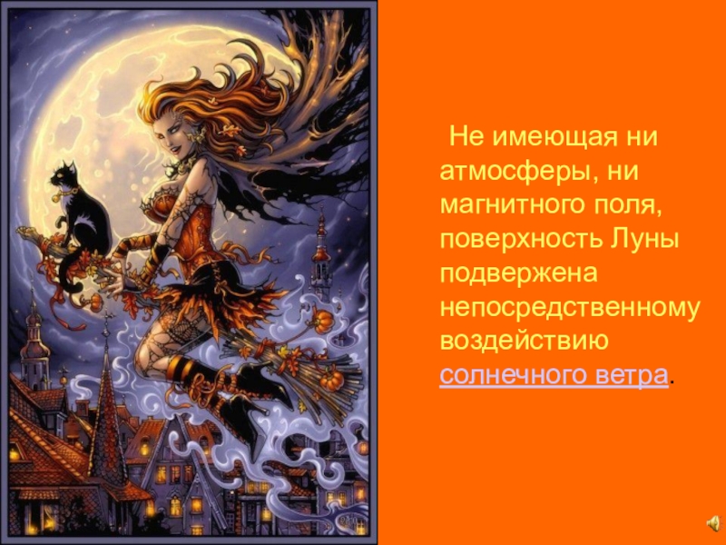 Слайд 21 Не имеющая ни атмосферы, ни магнитного поля, поверхность Луны подвержена непосредственному