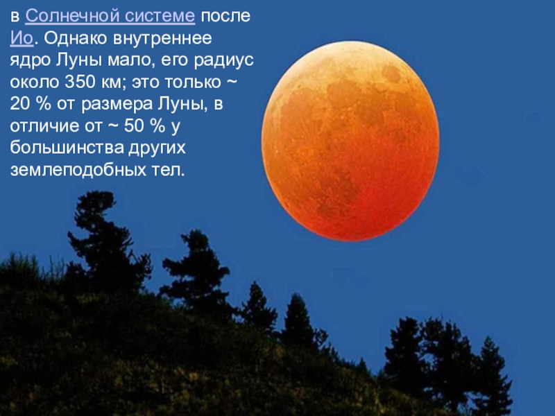 Слайд 45в Солнечной системе после Ио. Однако внутреннее ядро Луны мало, его