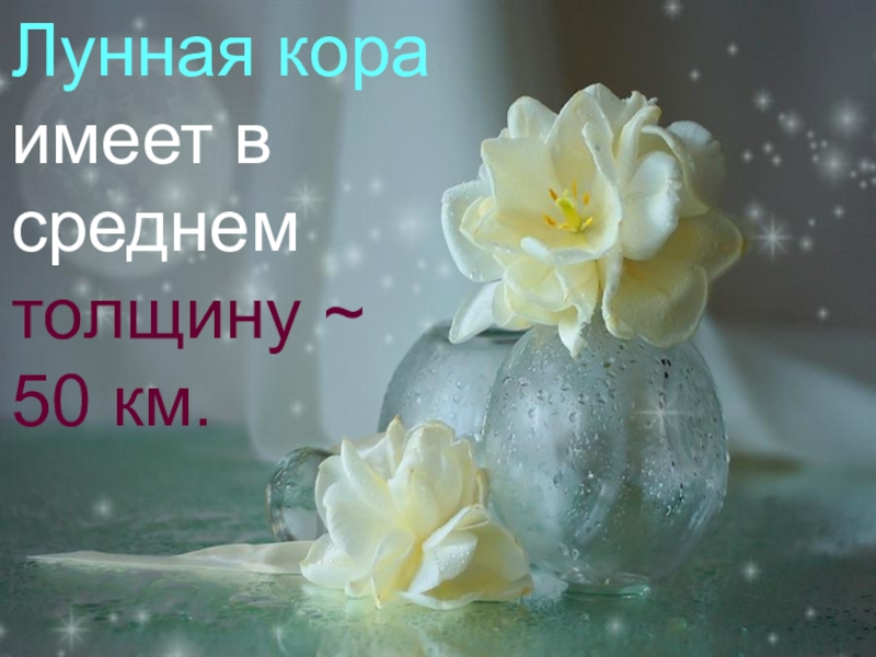 Слайд 43Лунная кора имеет в среднем толщину ~ 50 км.