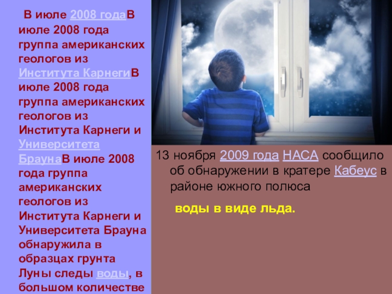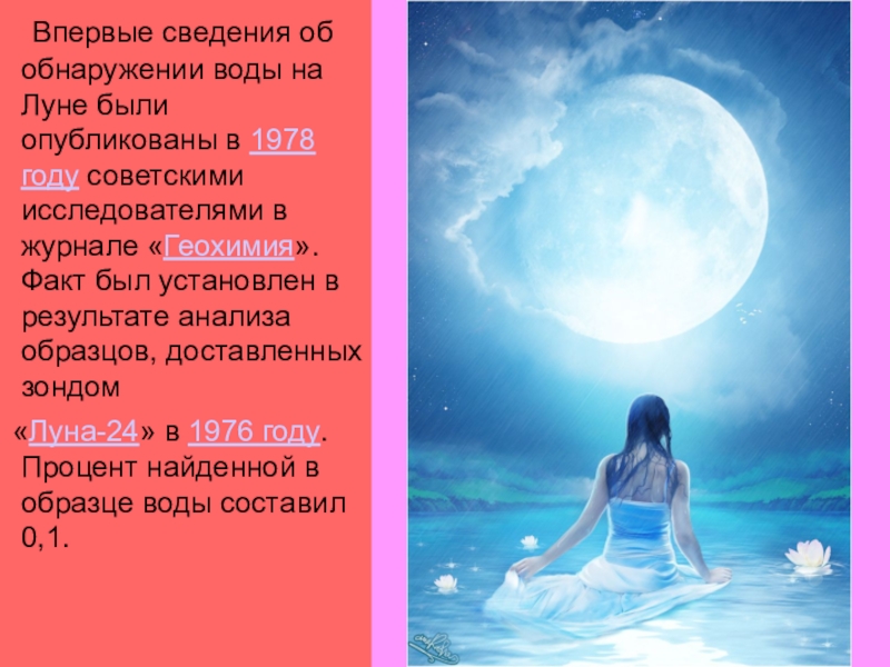 Слайд 32 Впервые сведения об обнаружении воды на Луне были опубликованы в 1978