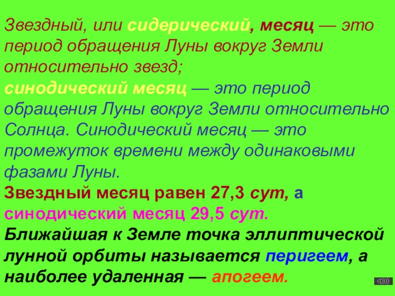 Слайд 5Звездный, или сидерический, месяц — это период обращения Луны вокруг Земли