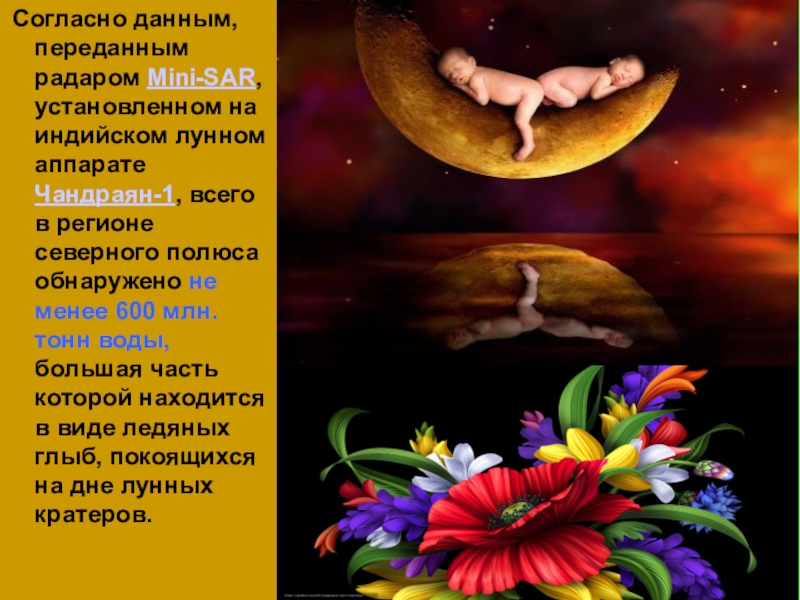 Слайд 34 Согласно данным, переданным радаром Mini-SAR, установленном на индийском лунном