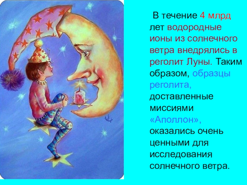 Слайд 22 В течение 4 млрд лет водородные ионы из солнечного ветра внедрялись в