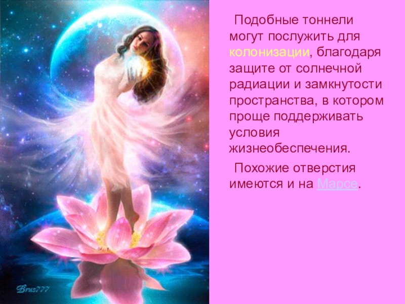 Слайд 27 Подобные тоннели могут послужить для колонизации, благодаря защите от солнечной радиации