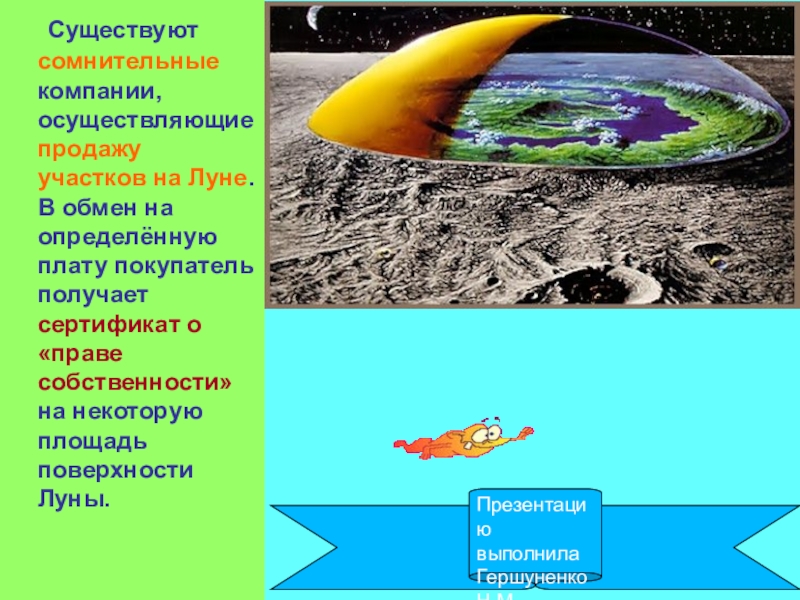 Слайд 56 Существуют сомнительные компании, осуществляющие продажу участков на Луне. В обмен на