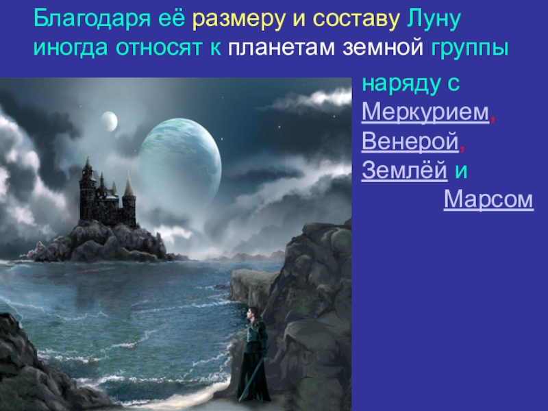 Слайд 17Благодаря её размеру и составу Луну иногда относят к планетам земной