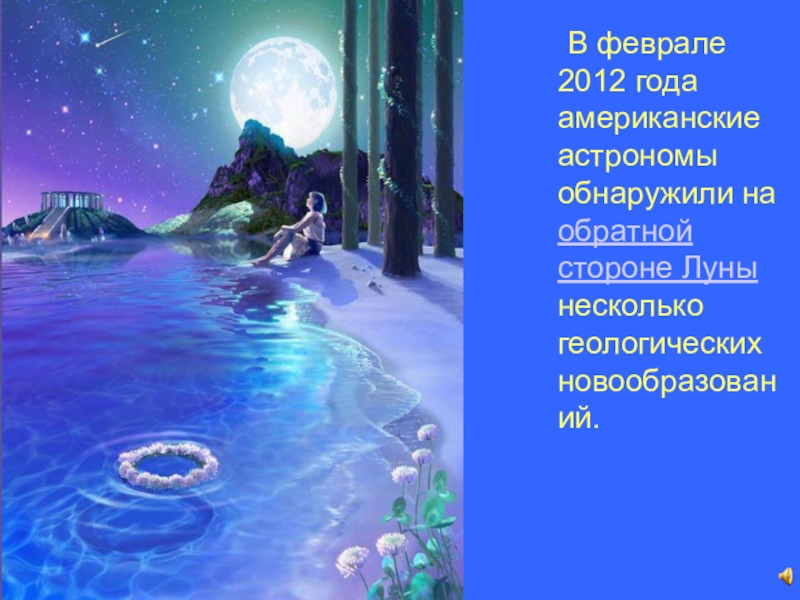 Слайд 23 В феврале 2012 года американские астрономы обнаружили на обратной стороне Луны