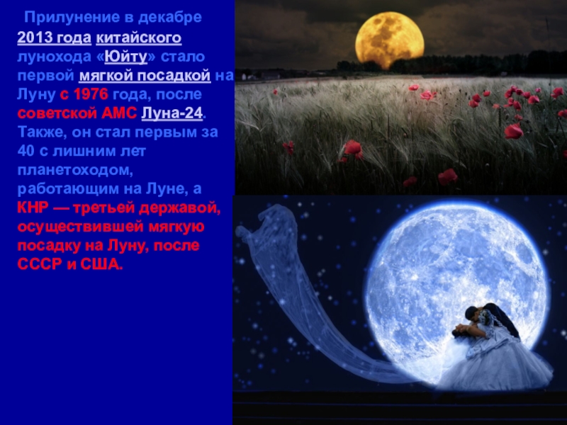 Слайд 53 Прилунение в декабре 2013 года китайского лунохода «Юйту» стало первой мягкой