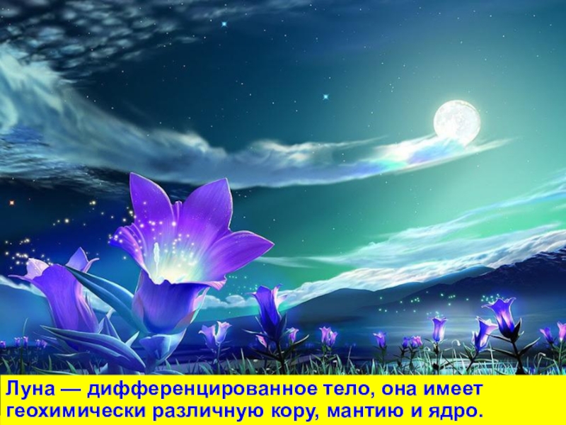 Слайд 39Луна — дифференцированное тело, она имеет геохимически различную кору, мантию и ядро.