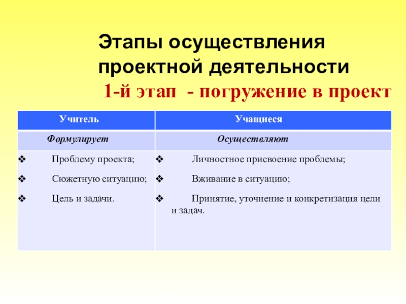 Этапы осуществления проектной деятельности  1-й этап - погружение в проект