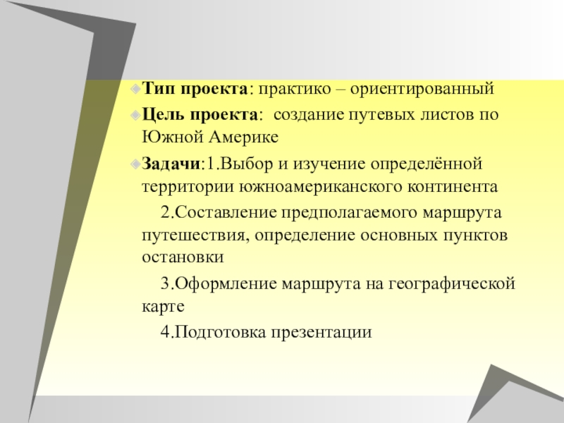 Задачи:1.Выбор и изучение определённой территории южноамериканского континента