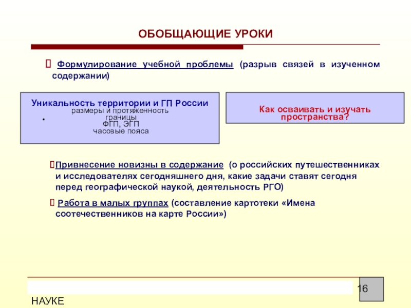 Привнесение новизны содержания в обобщающие уроки