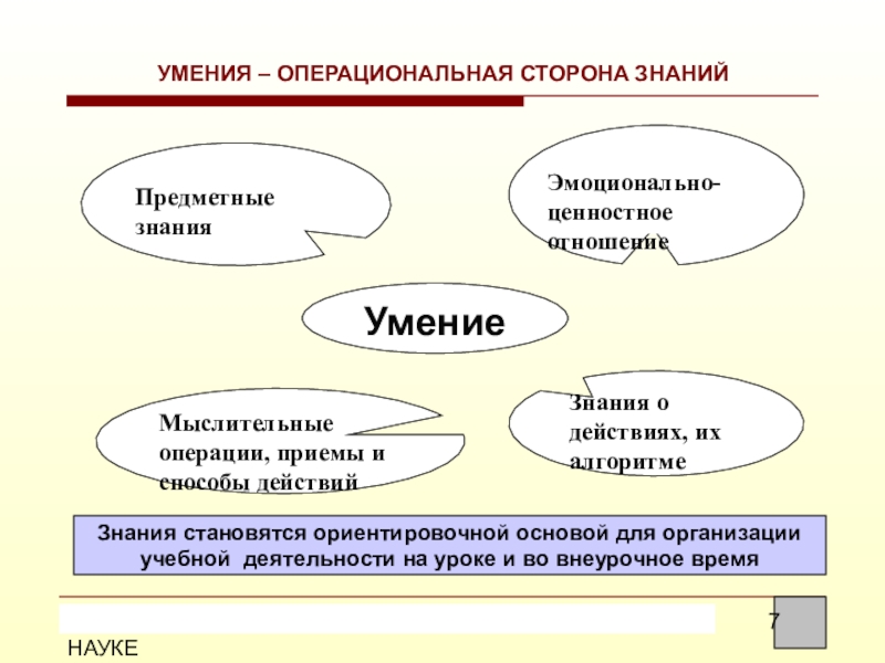 Знания становятся ориентировочной основой для организации