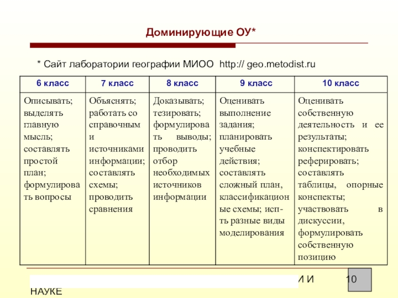 Умения, формируемые в обучении географии