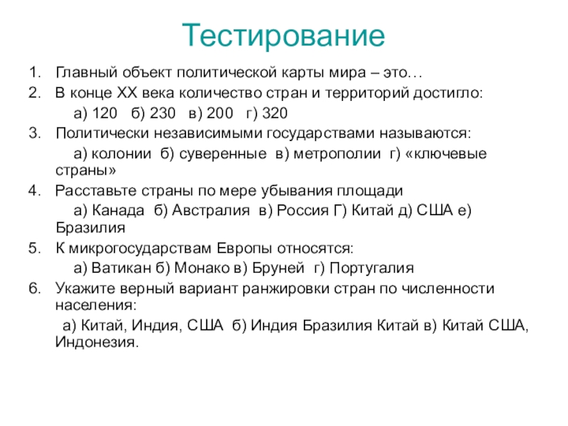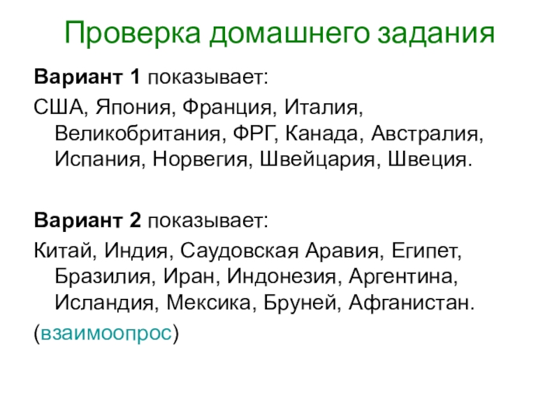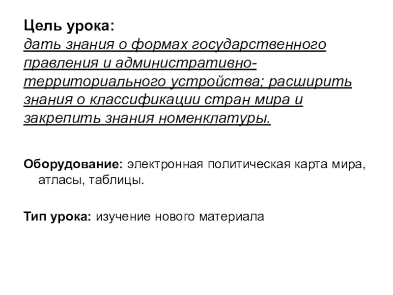 Оборудование: электронная политическая карта мира, атласы, таблицы.
