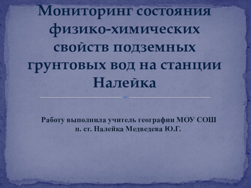 состояния физико-химических свойств подземных грунтовых вод на станции Налейка