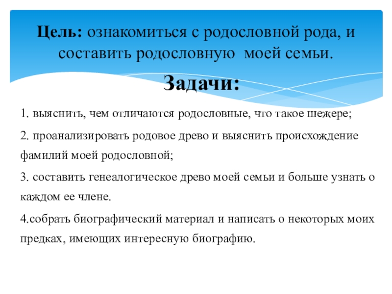 Цель: ознакомиться с родословной рода, и составить родословную моей семьи.
