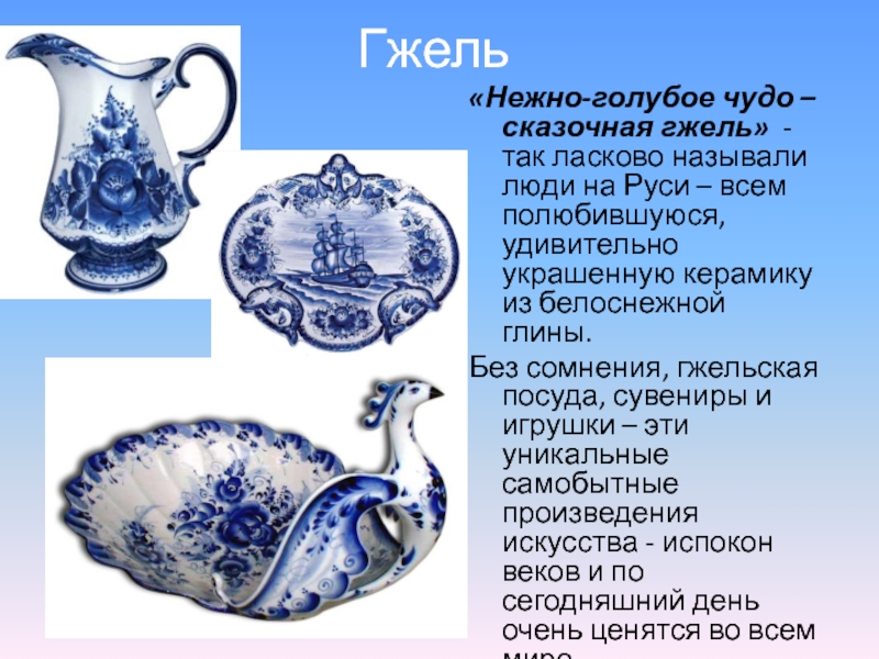 «Нежно-голубое чудо – сказочная гжель» - так ласково называли люди на Руси