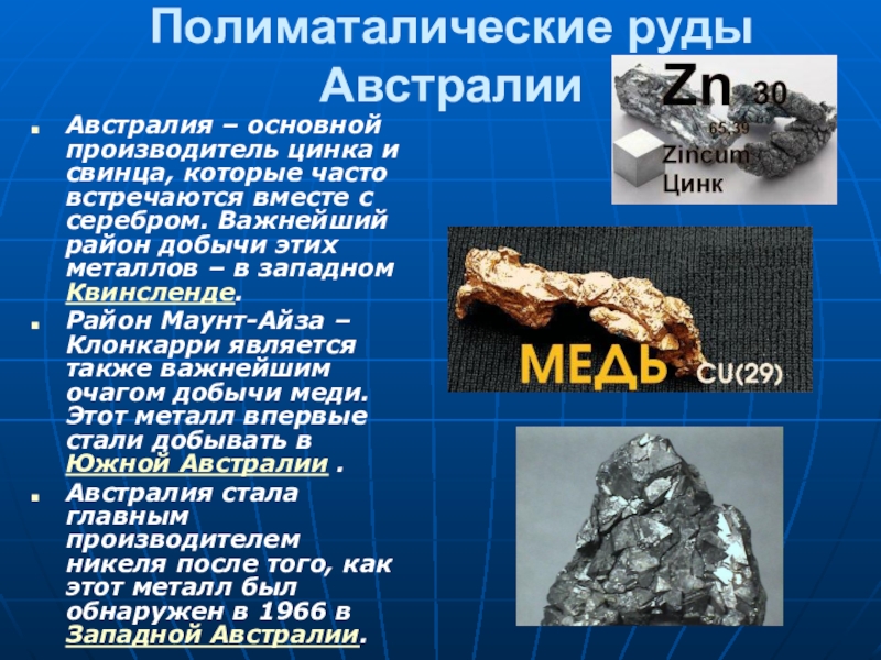В основе развития угольной промышленности лежат крупные запасы, которые могут обеспечивать добычу угля на протяжении 240 лет. Основные залежи каменного угля расположены в восточной части материка. Страна обладает самыми крупными в мире ресурсами высококачественных коксующихся углей. Месторождения энергетических углей отличаются очень благоприятными горно-геологическими условиями. Наиболее крупные месторождения, разрабатываемые в настоящее время, находятся в районе городов Ньюкасл и Литтоу в штате Новый Южный Уэльс