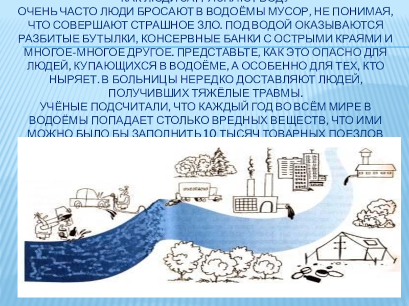 Слайд 5Как люди загрязняют воду