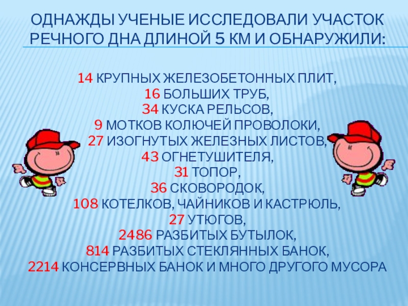 Слайд 4Однажды ученые исследовали участок речного дна длиной 5 км и обнаружили: