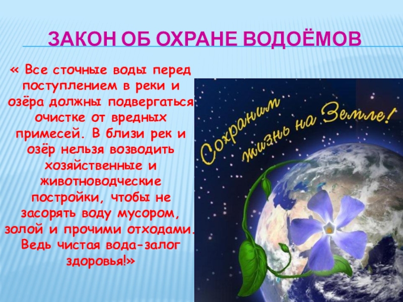 Слайд 10Закон об охране водоёмов