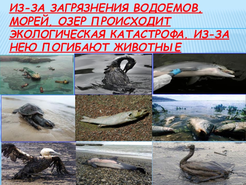 Слайд 9из-за загрязнения водоемов, морей, озер происходит Экологическая катастрофа. из-за нею погибают