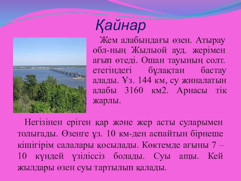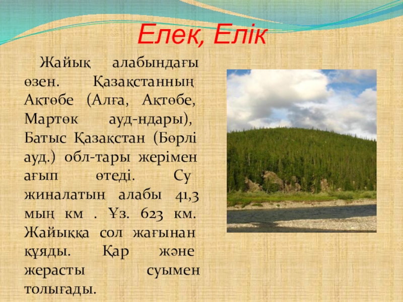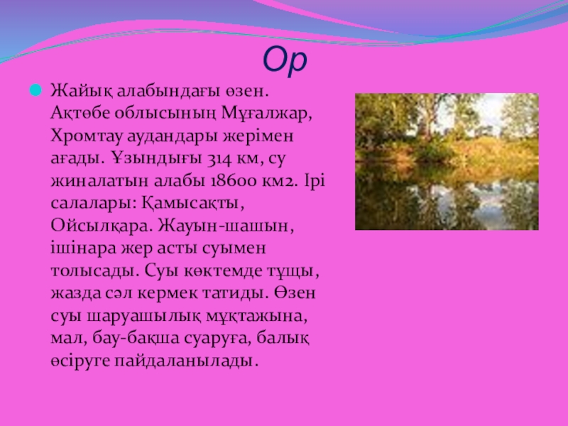 Жайық алабындағы өзен. Қазақстанның Ақтөбе (Алға, Ақтөбе, Мартөк ауд-ндары),