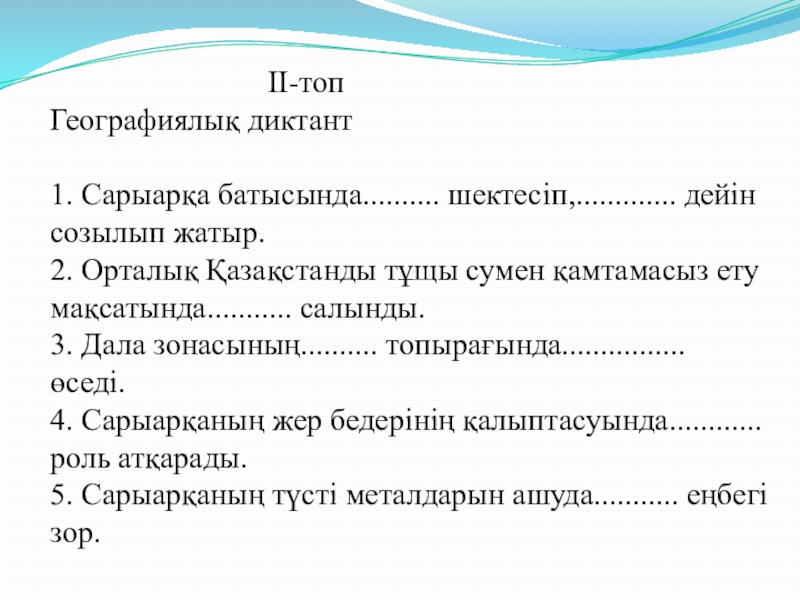 1.Сарыарқа республикамыздың ................................................................... алып жатыр.
