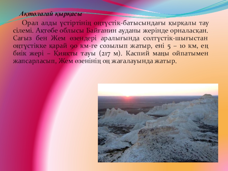 Слайд 21Ақтолағай қырқасы