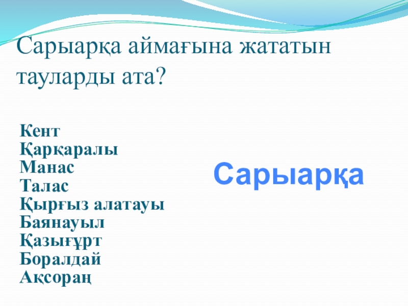 Сарыарқа аймағына жататын тауларды ата?