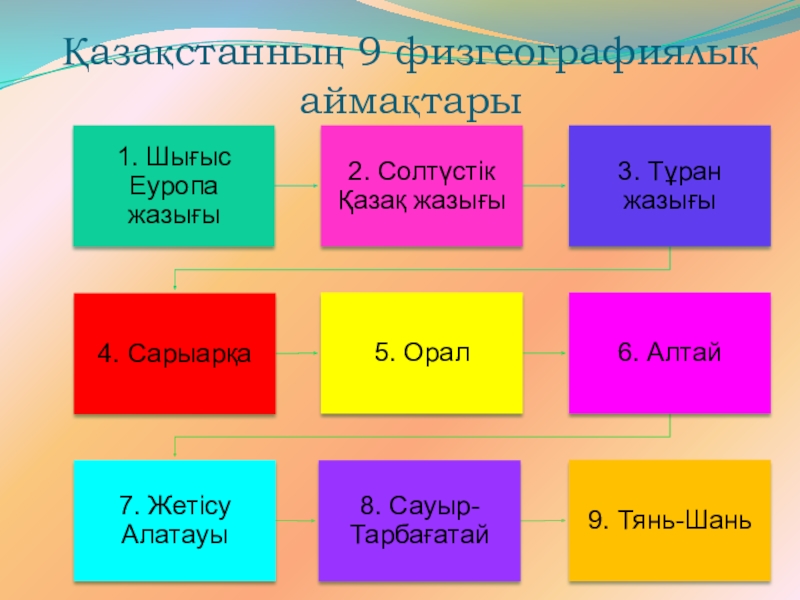 Слайд 9Қазақстанның 9 физгеографиялық аймақтары
