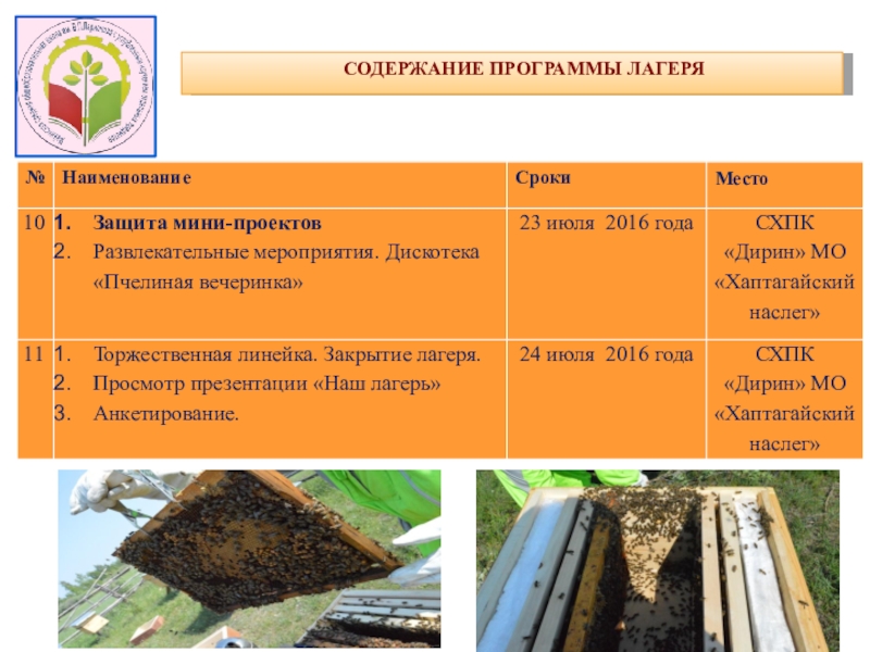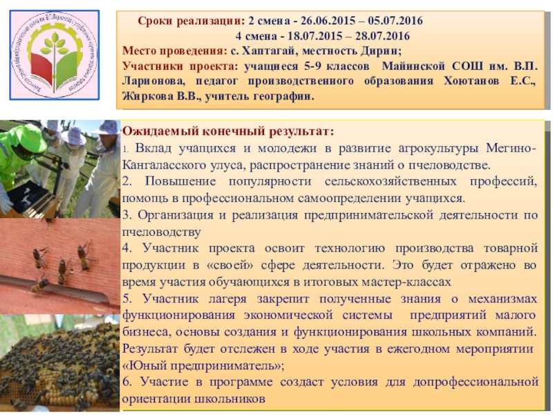 1. Вклад учащихся и молодежи в развитие агрокультуры Мегино-Кангаласского улуса, распространение знаний о пчеловодстве.