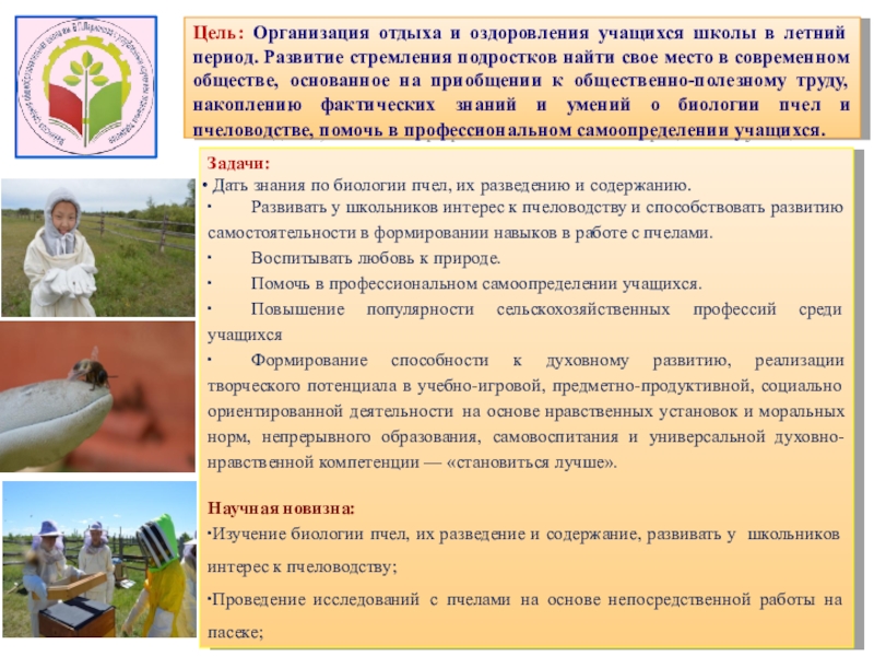 Развивать у школьников интерес к пчеловодству и способствовать развитию самостоятельности в формировании навыков в работе с пчелами.