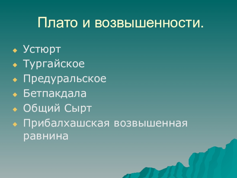 равнинно-низкогорные области на западе, севере и в центре Казахстана.
